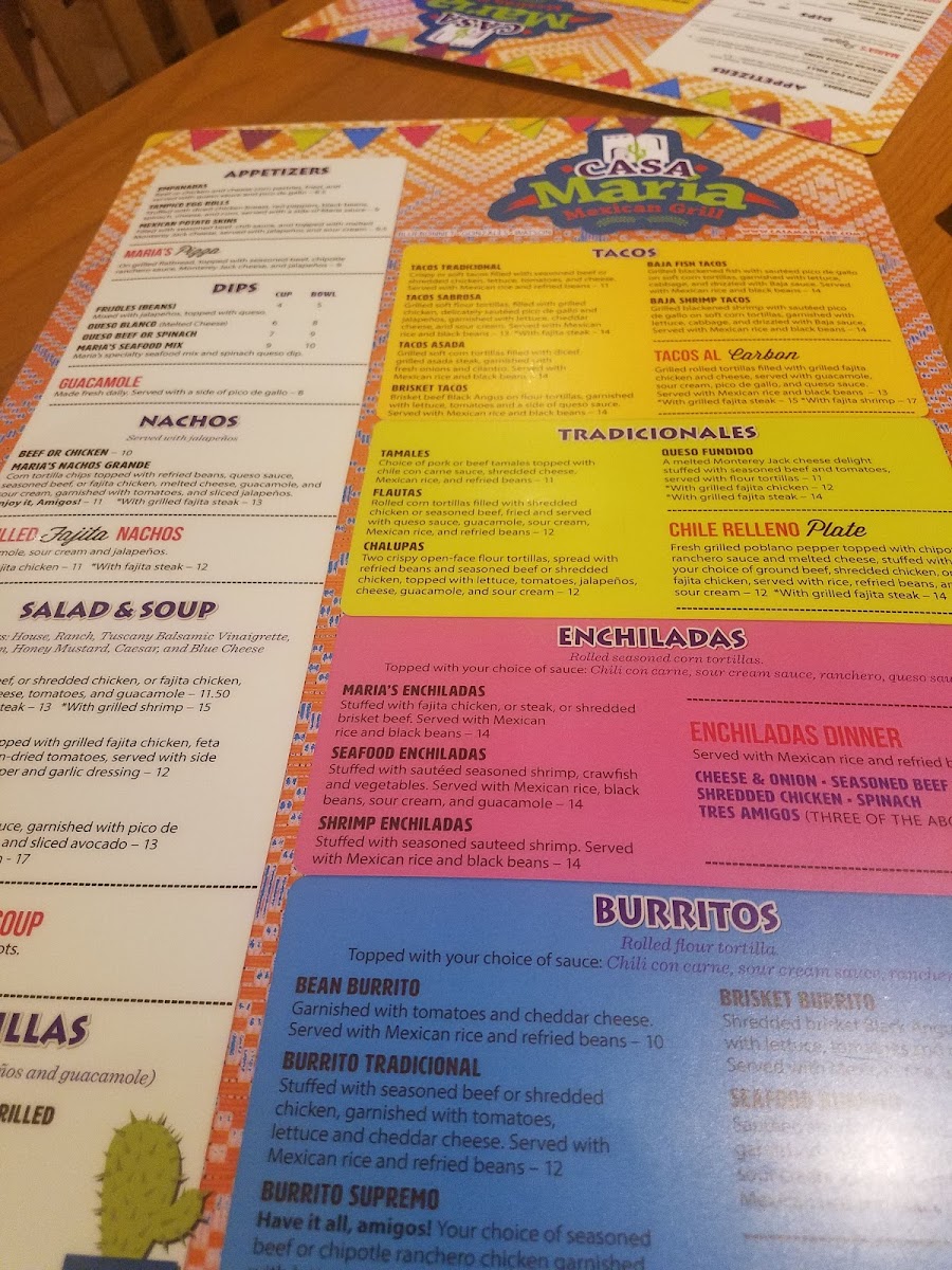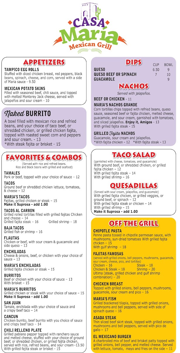 CASA MARIA MEXICAN GRILL - BLUEBONNET Menu